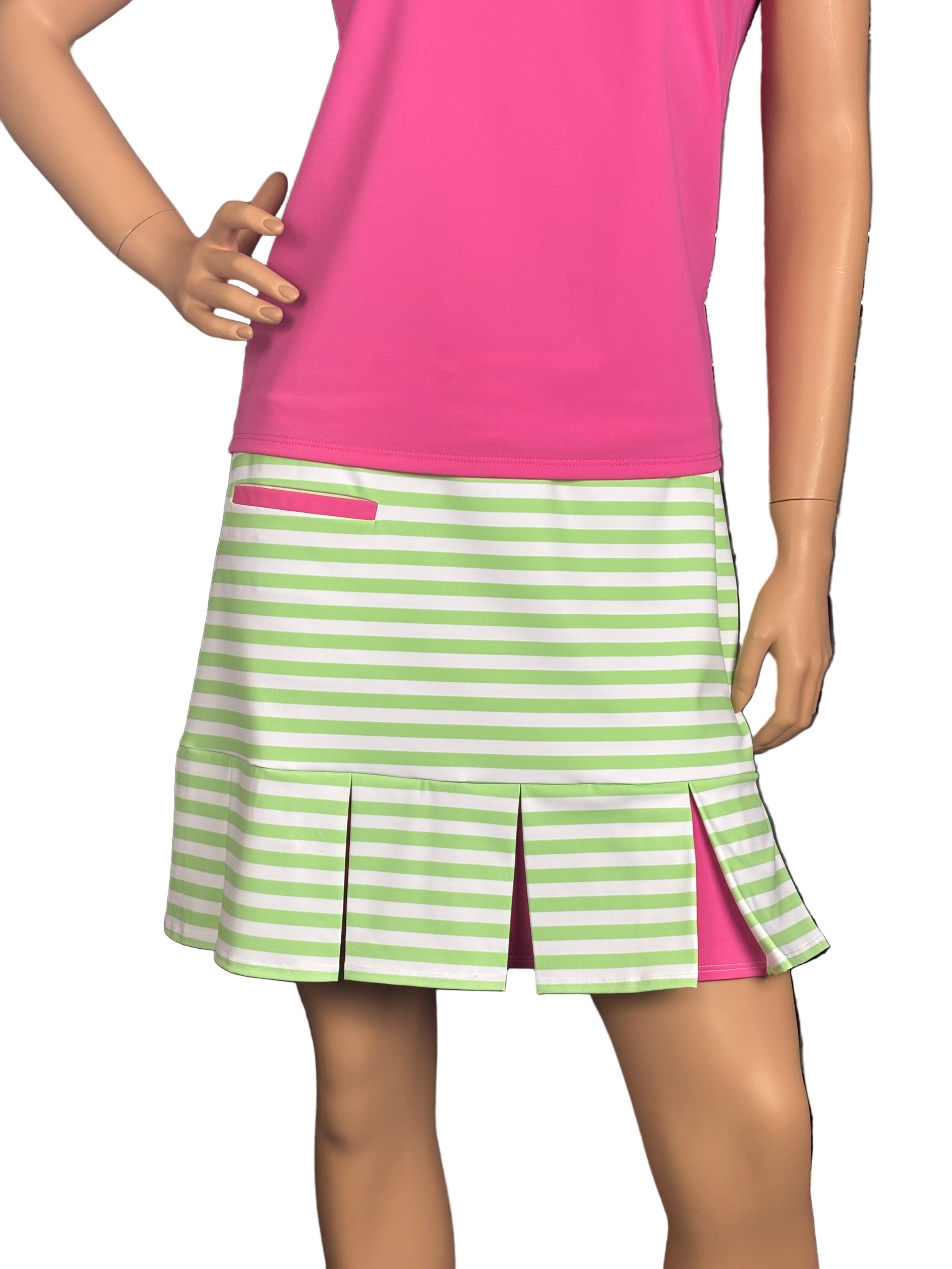 Melly M- Pinehurst Celery Stripe/Pink Skort