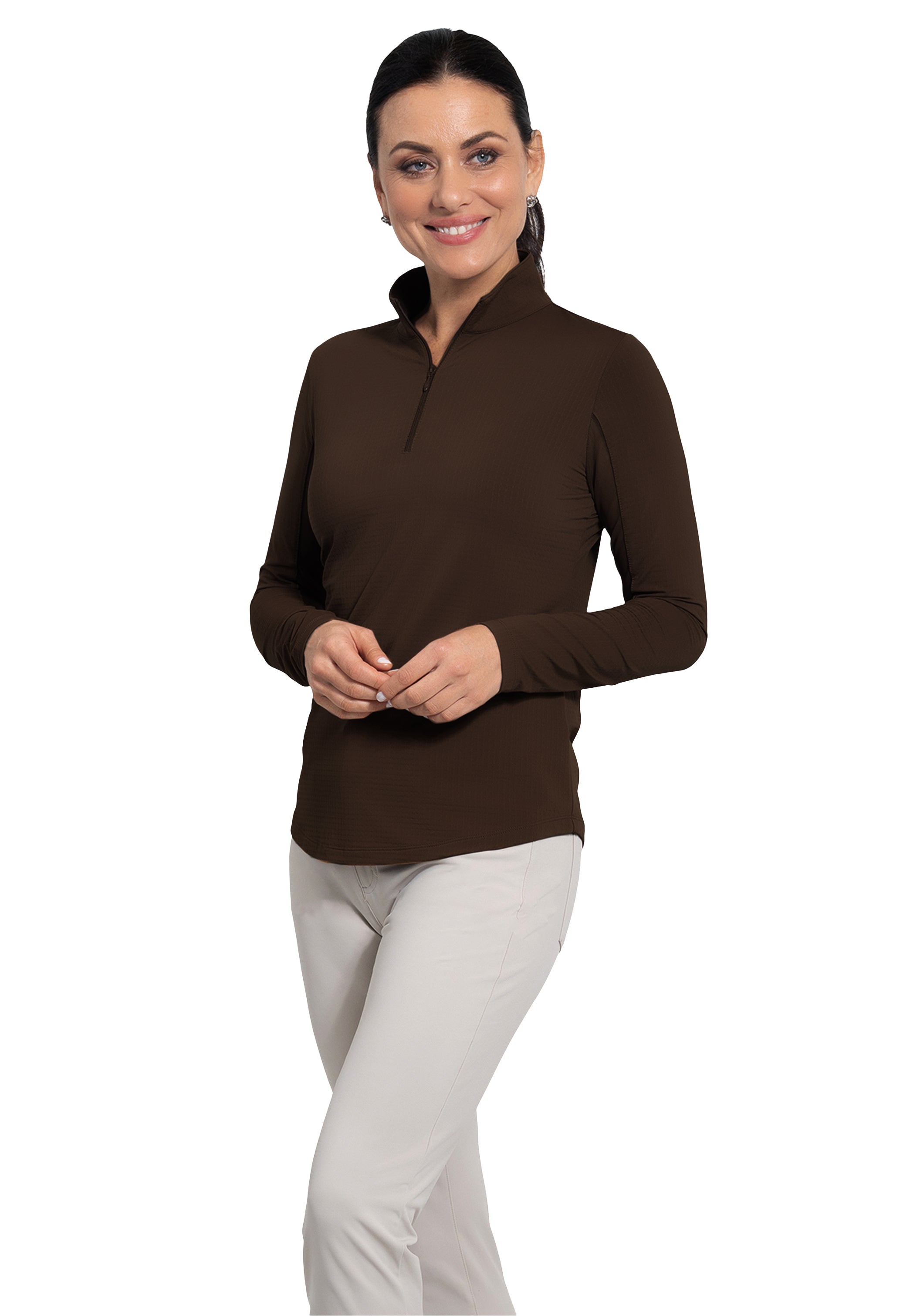 IBKUL- Long Sleeve Zip Mock Chocolate (Style#: 80000)